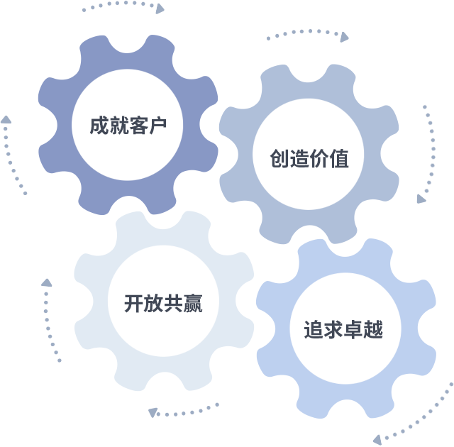 成就客户是一切决策的出发点,创造价值是衡量所有工作的标准,追求卓越是TG反波胆做事做人的态度,开放共赢是TG反波胆的格局也是最终的结果。价值观的齿轮环环相扣,推动着组织里的每个人不断向前。